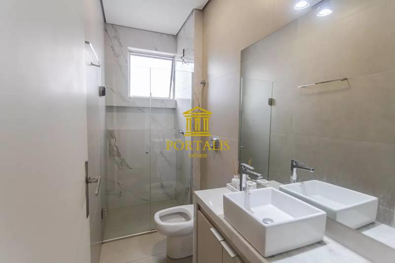 Banheiros (social e suíte) com excelente acabamento, armários, espelho e box.