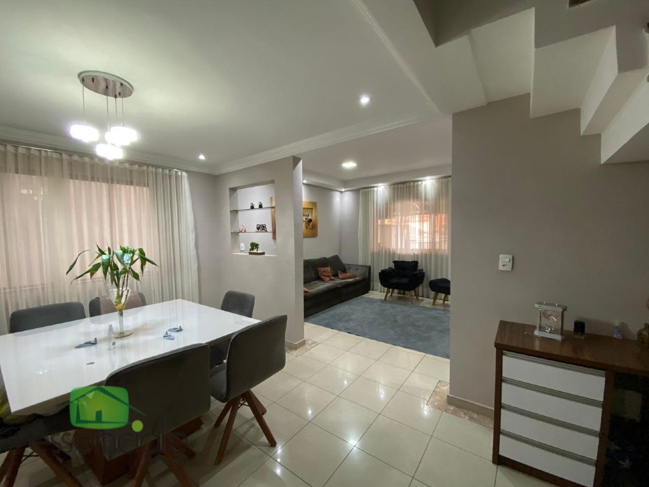 O segundo andar é composto por uma sala de estar ampla, com lavabo, piso em porcelanato, rebaixamento em gesso e iluminação planejada, proporcionando um ambiente sofisticado e aconchegante. Uma espaçosa varanda complementa o espaço, oferecendo um local ideal para momentos de descanso e contemplação. A sala de jantar é integrada à cozinha, que conta com bancadas em granito, armários planejados de alta qualidade e ótimo aproveitamento de espaço. A área de serviço é separada, garantindo mais organização, e o quintal dispõe de um espaço gourmet montado, com bancada, pia e churrasqueira, além de ducha para os dias mais quentes.